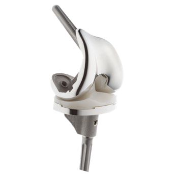 El componente femoral se proporciona en dos variantes, con retención cruzada (CR) y posterior estabilizado (PS).
